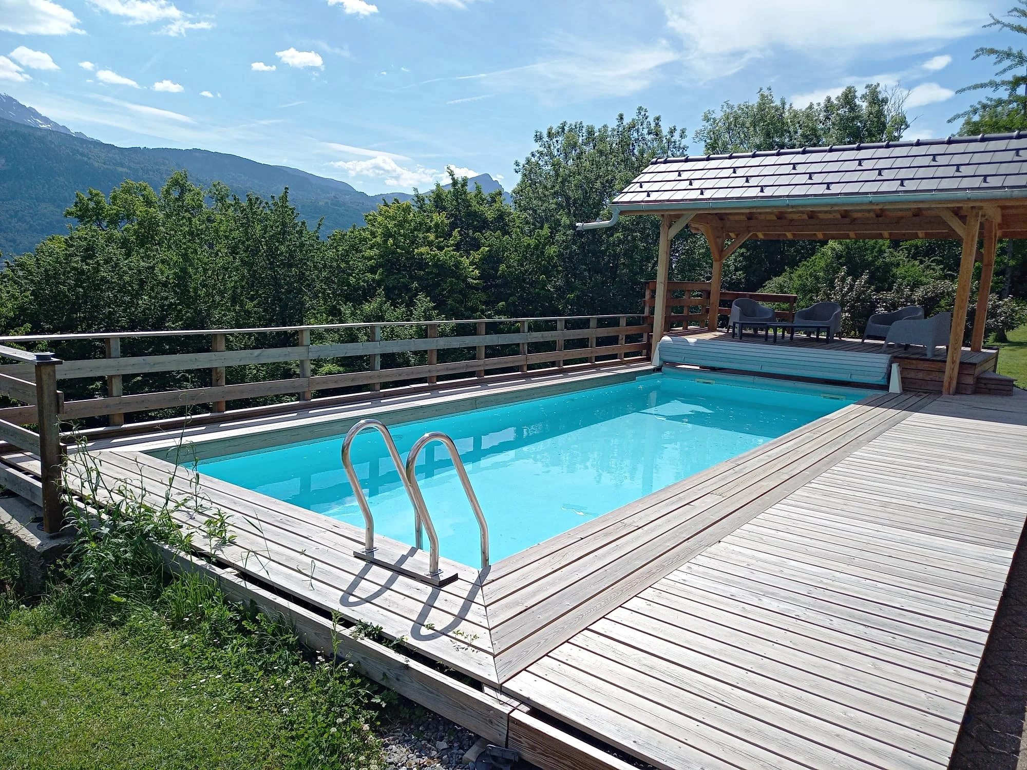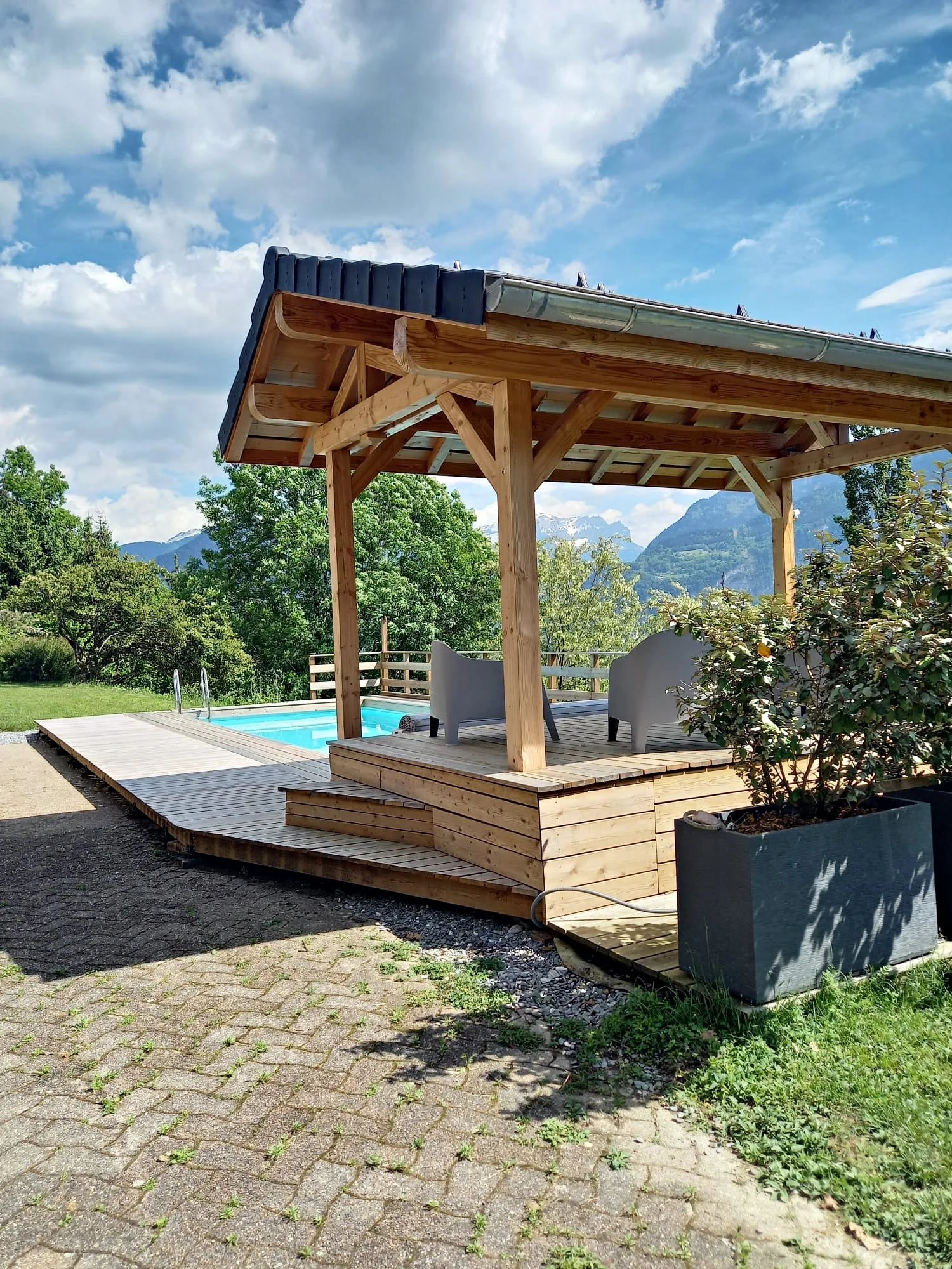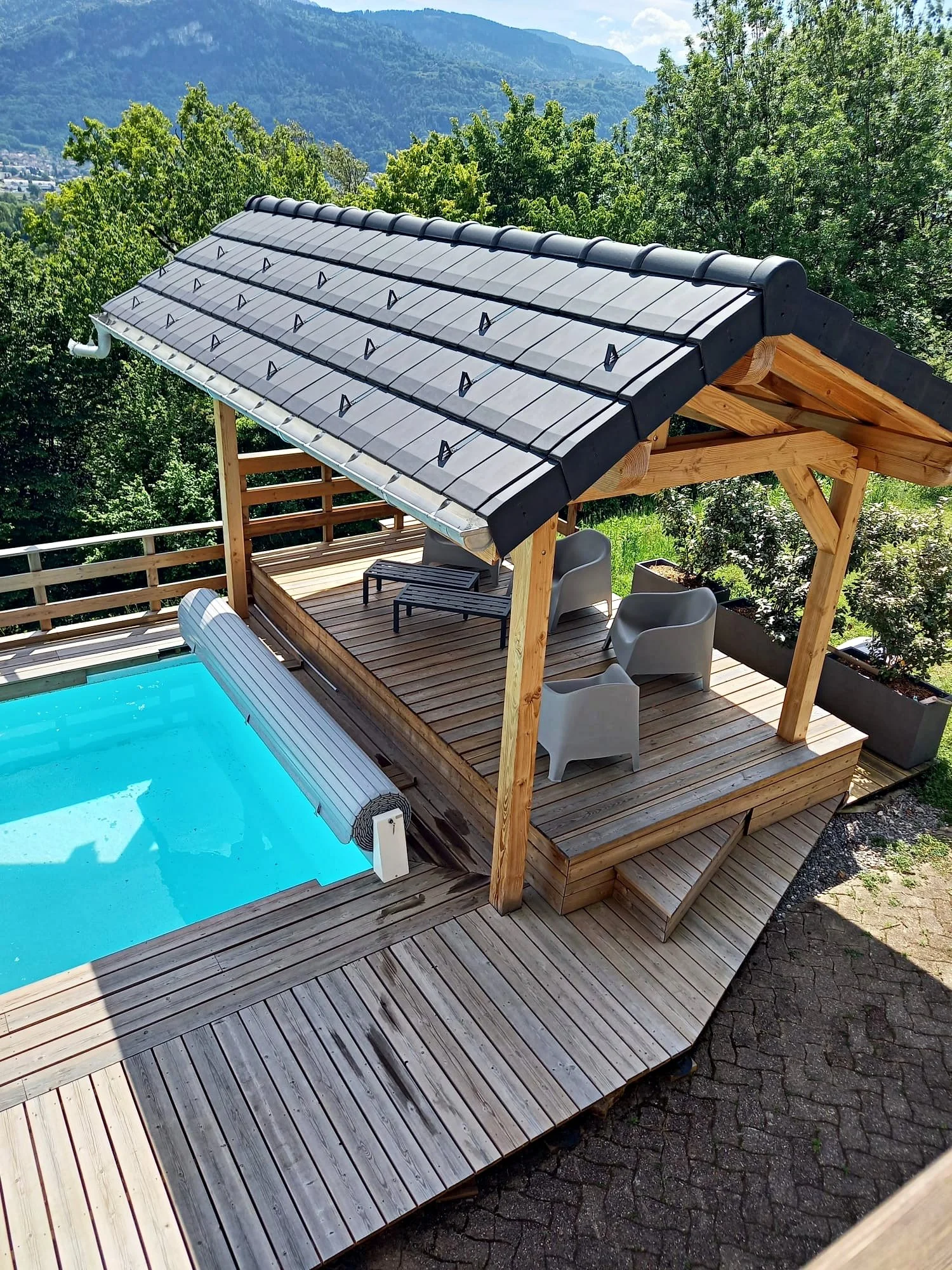 Réalisation d’une terrasse en bois avec abri pour piscine, à Thyez.